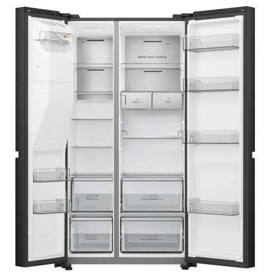 Hladilnik side-by-side z dvema vodoravnima, vgreznjenima ročajema ne izboljša le videza aparata, temveč omogoča tudi enostavno odpiranje vrat tako odraslim kot otrokom.